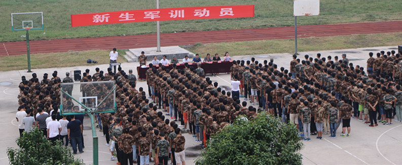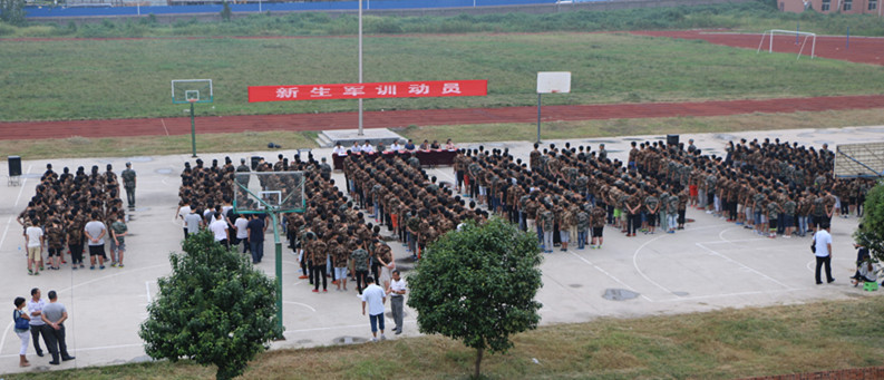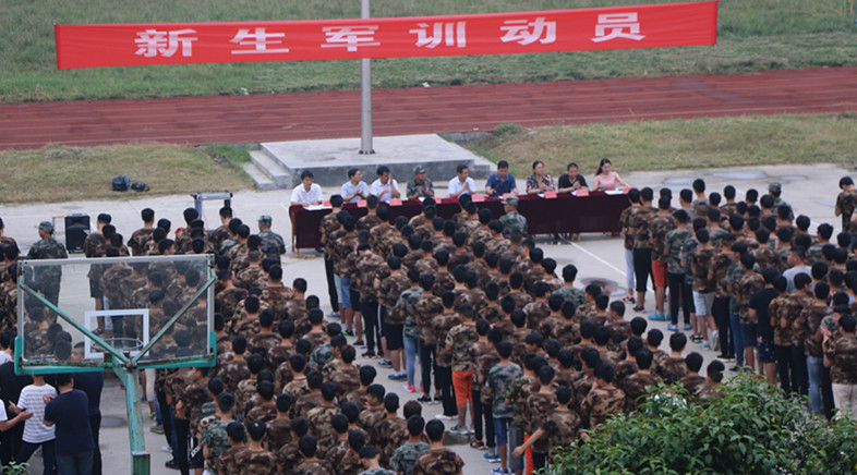 洛阳职业技术学院高新校区于2016年8月23日上午,在操场隆重举行2016级五年一贯制和三年制新生军训动员大会。我院学生处许处长和团委姚书记陪同杜院长亲临现场指导工作,工科各系部负责人和学生管理人员参加。