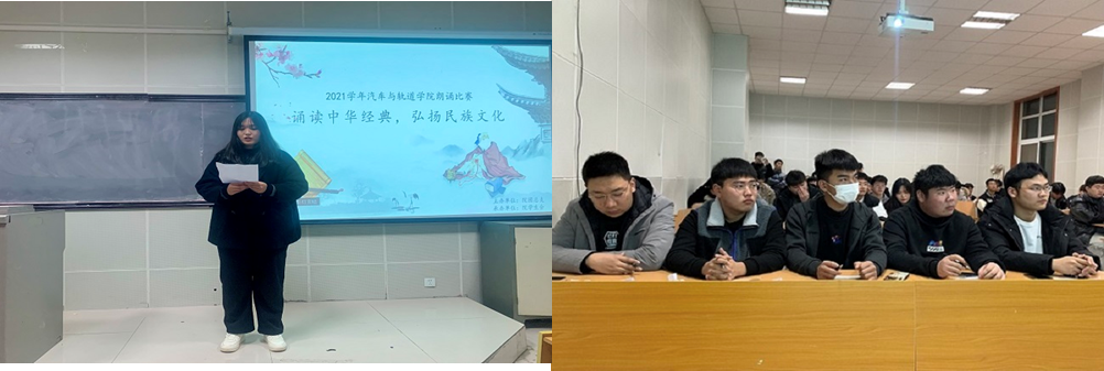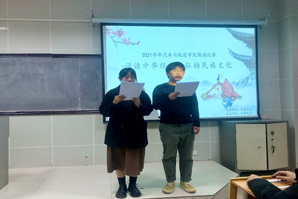 为了弘扬中华民族的传统文化,增强文化自信,疫情封校期间丰富同学们的校园生活,12月3日汽车与轨道交通学院举办了以“诵读中华经典,弘扬民族文化”为主题的朗诵比赛。活动由汽车与轨道交通学院团总支主办,学生会承办,全院学生参与。