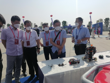 汽车与轨道交通学院院长史恒亮带队参加了本次职业教育周的设备展览;我院所参与展品包括智能AGV、ATV车、智能控制交流充电桩以及智能控制机器人等具有技术创新、智能化程度高、技术性能强等设备。
