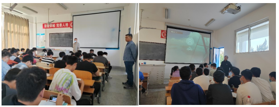 课堂直播过程中,汽车与轨道交通学院院长史恒亮在22级新能源汽车303班坐班陪同观看,副书记刘志强和副院长陈化奎督查巡查各班纪律、设备调试、疫情防控等收看情况。