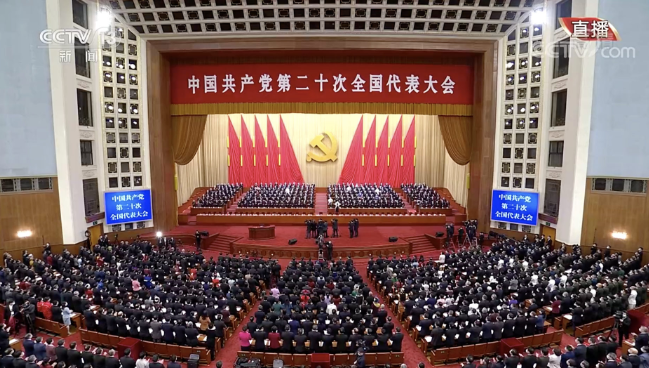 中国共产党第二十次全国代表大会16日上午在人民大会堂开幕。习近平代表第十九届中央委员会向党的二十大作报告。习近平说,大会的主题是:高举中国特色社会主义伟大旗帜,全面贯彻新时代中国特色社会主义思想,弘扬伟大建党精神,自信自强、守正创新,踔厉奋发、勇毅前行,为全面建设社会主义现代化国家、全面推进中华民族伟大复兴而团结奋斗。