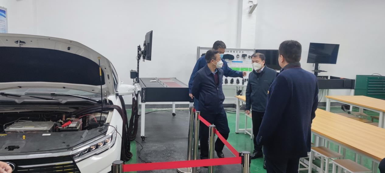 朱美荣书记调研汽车与轨道交通学院实训室建设,由汽车与轨道交通学院院长史恒亮、副书记刘志强、副院长陈化奎等陪同调研。