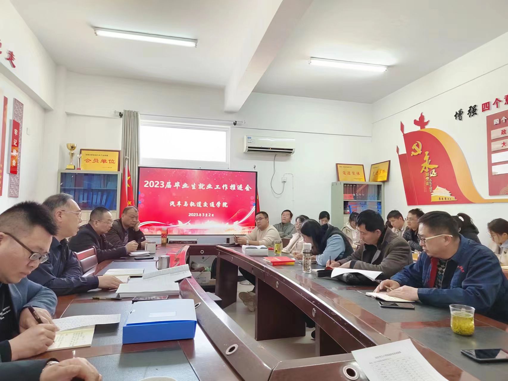 刘志强书记首先在会议上传达了2023届全国普通高校毕业生就业工作第二次调度会议的精神,并分析了2023年的就业形势,强调了2023年的就业压力。然后,根据2023年的就业形势制定了各项促就业政策,包含汽车与轨道交通学院招聘会的举办、领导班子与各教研室“访企拓岗”任务等。最后,刘志强书记讲解了困难毕业生的帮扶过程及帮扶台账填写,并明确了各帮扶教师的责任,要求各教师按时完成帮扶任务。