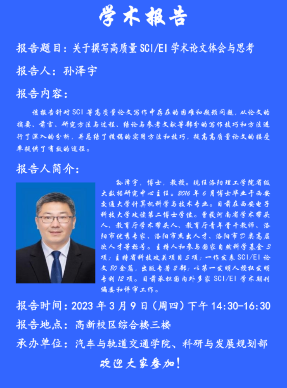 学术报告——关于撰写高质量SCI/EI学术论文体会与思考