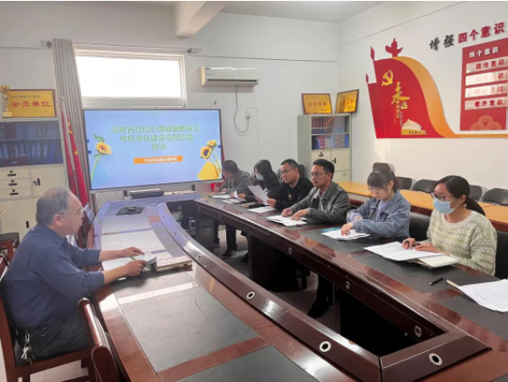 刘志强副书记首先强调了高校心理健康教育工作要紧紧围绕全面提升新时代全省大学生心理健康教育工作质量和工作水平这一中心任务。随后心理专员何亚楠老师将河南省高校心理健康教育工作标准化建设应知应会培训的内容进行了详细的介绍。