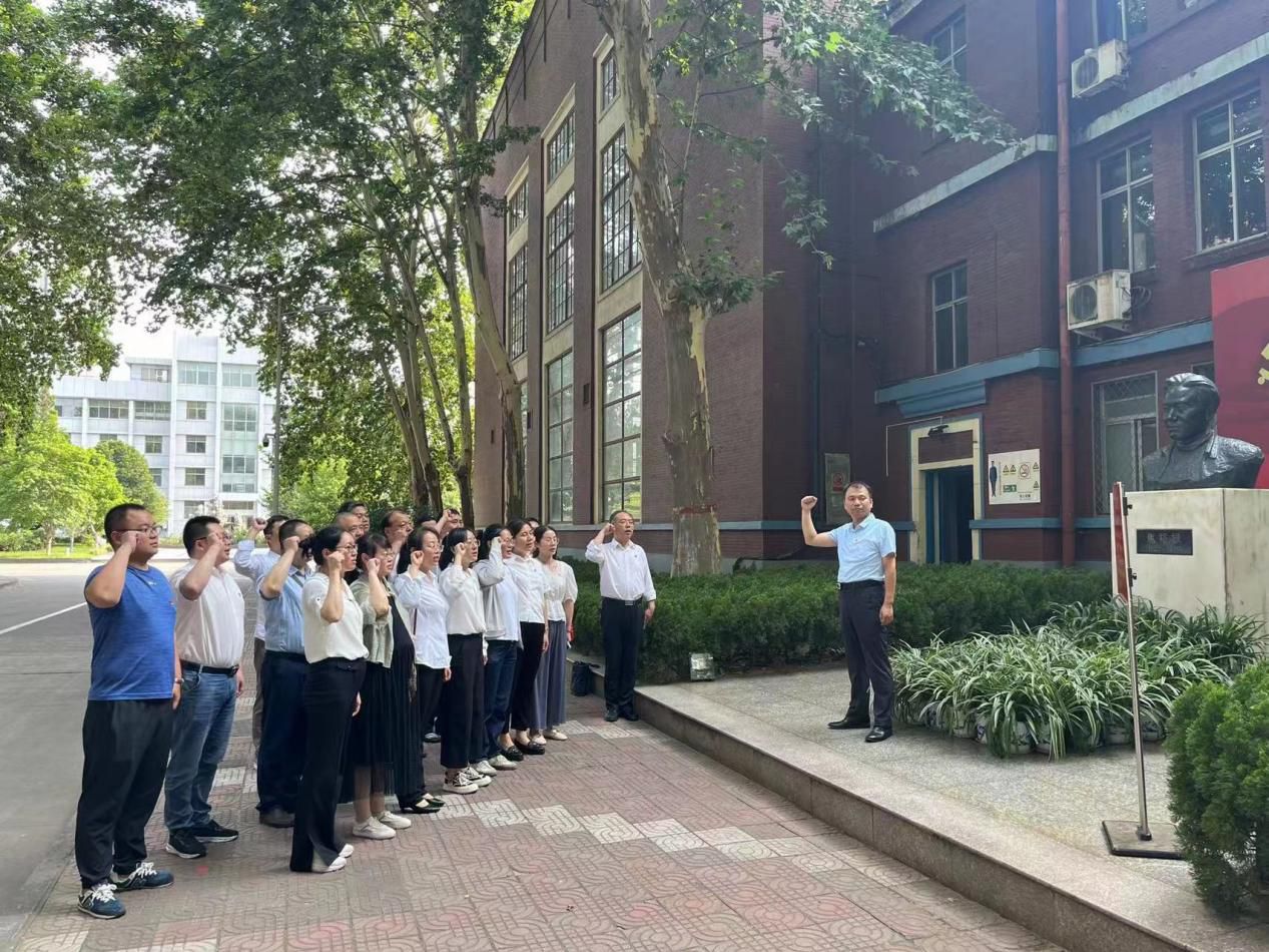 最后,汽车与轨道交通学院院长史恒亮带领全体教职工党员开展了重温入党誓词活动,回顾入党宣誓时的庄严承诺和坚定决心,增强了党性意识,充分发挥了党员的先锋模范作用,永葆共产党员政治本色。通过本次迎接建党102周年主题党日活动,史院长深刻指出,大家要更加深刻地体会到习近平总书记关于“焦裕禄精神”打造先进装备制造业的深意,要用心思考焦裕禄精神,做焦裕禄精神的传承者、弘扬者、践行者,秉承艰苦奋斗、务实清廉的作风,在实际工作中践行“一准二保三好四快五及时”的工作做法,用亲劲、韧劲儿、拼劲儿扛起共产党人的责任担当,自觉转化为自身的执行力、创新力,立足岗位,履职尽责,主动担当,奋发向上,切实增强“四个意识”、坚定“四个自信”、做到“两个维护”,用实际行动诠释一名共产党员的初心和使命,为党旗增辉添彩,为推动高质量发展贡献自己的力量。
