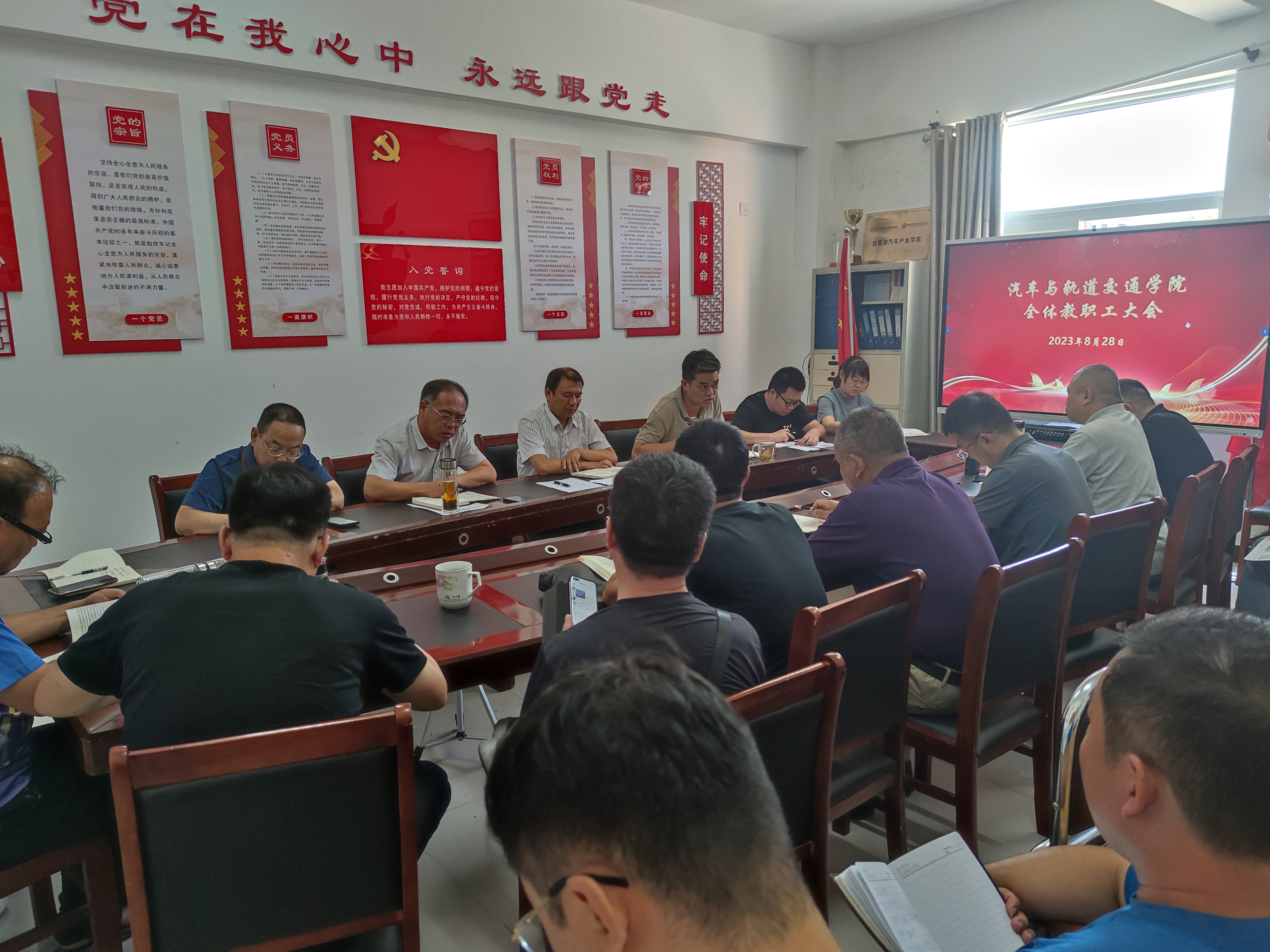 2023年8月28日下午,汽车与轨道交通学院召开2023—2024年度秋季开学第一次全体教职工大会。参加会议的有院长史恒亮、党总支副书记刘志强、教学副院长陈化奎、各部门负责人及全体教职工。