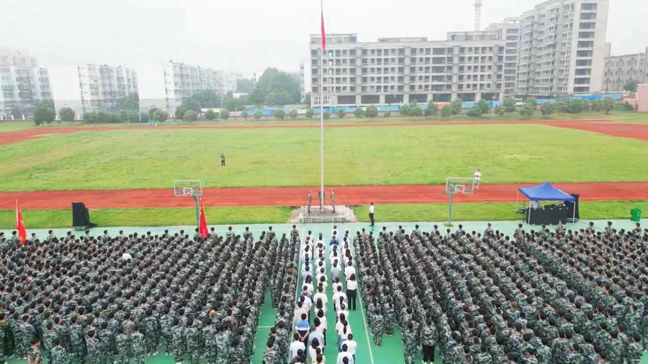 旭日东升,霞光万道。国旗护卫队步伐坚定,护卫着鲜艳的五星红旗,昂首阔步走向国旗台。伴随着雄壮激昂的《义勇军进行曲》,全体师生庄严肃立,齐唱国歌,共同凝视着五星红旗冉冉升起。