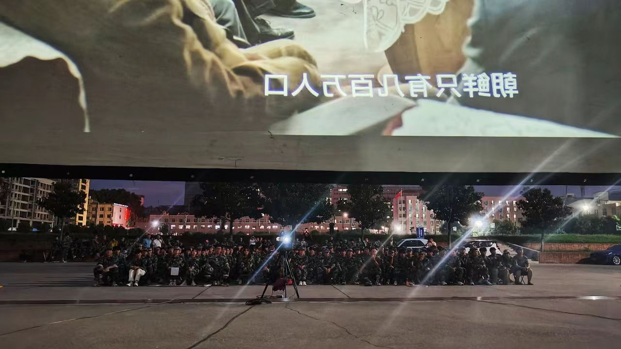 电影开始前,魏征书记发表了重要讲话,他对全体新生近期的军训表现表示高度肯定,包括军事技能练习、内务整理、思想政治教育和遵守纪律等方面。他强调:“抗美援朝精神”是第一批中国共产党人精神谱系的伟大精神,在抗美援朝中,无数革命先烈为了祖国的和平与安宁,不怕流血牺牲奋勇杀敌,告诉大家要珍惜先烈用生命换来的和平幸福生活,鼓励大家努力学习、打磨本领、报效祖国,为民族汽车工业的崛起、为国家的发展建设、为建设中国特色社会主义现代化强国、为中华民族的伟大复兴,发挥我们新时代青年学生应有的使命与担当。最后对协办单位洛阳市电影公司再次表示感谢。