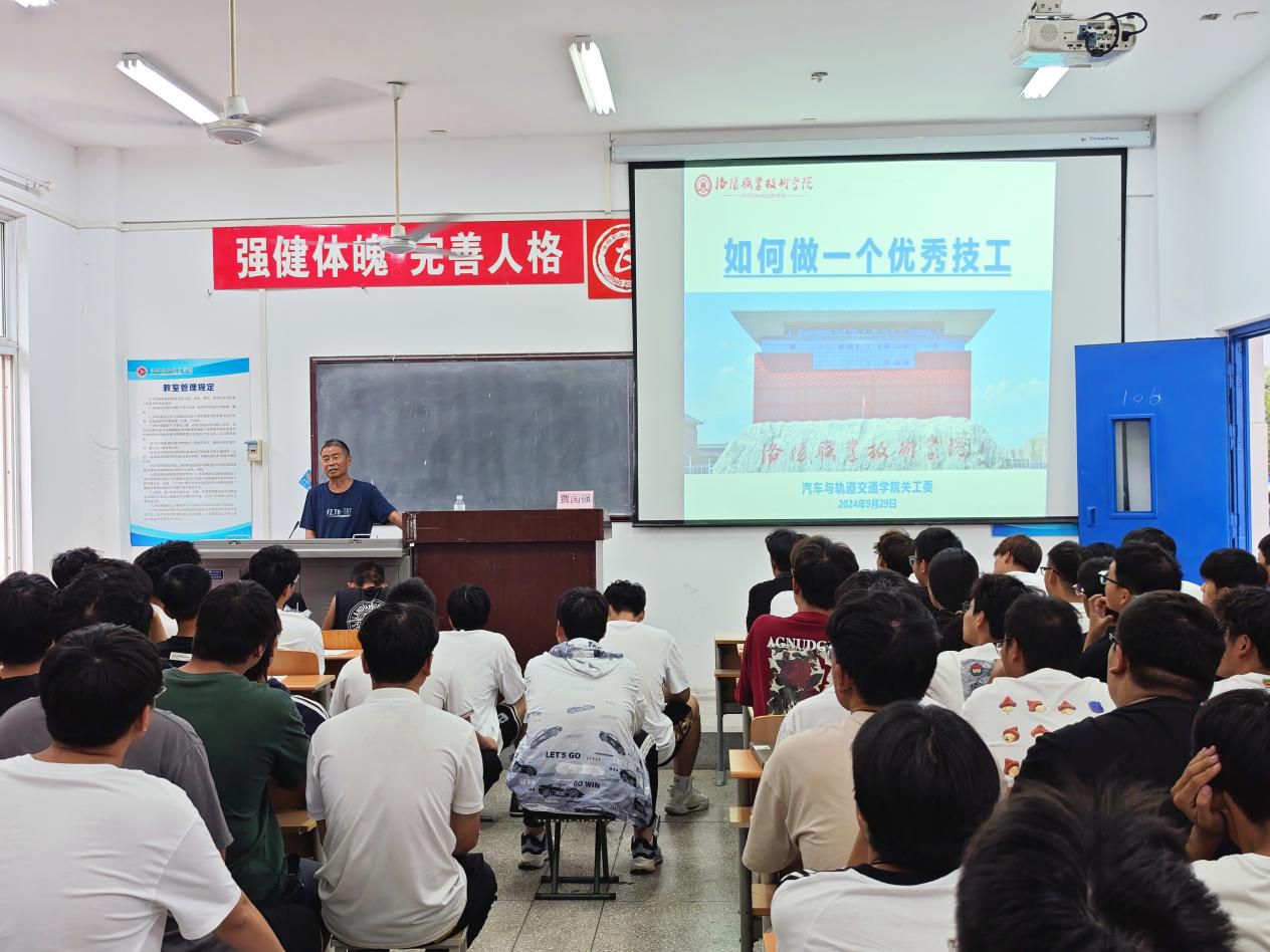 为深入贯彻党的教育方针,聚焦立德树人根本任务,进一步加强对青年学生的关爱与引导,9月29日,汽车与轨道交通学院关工委特邀汽车维修高级技师贾国强,围绕“如何做一个优秀技工”的主题,为2024级新生带来了一场精彩纷呈的讲座。汽车与轨道交通学院关工委主任刘志强、副主任王朋博、成员何亚楠,学生代表100余人参与此次活动。