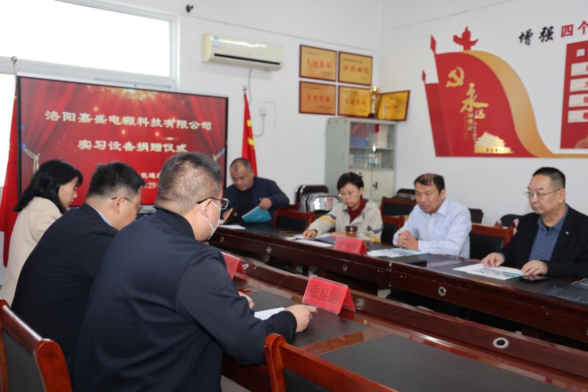 为深入探讨校企合作的新模式与新途径,共同推动产学研深度融合,培养高素质应用型人才和促进企业创新发展,10月29日上午,洛阳嘉盛电源科技有限公司研发总监赵星一行莅临洛阳职业技术学院汽车与轨道交通学院,对合作项目进行深度洽谈,并举行了教学实训设备捐赠仪式。