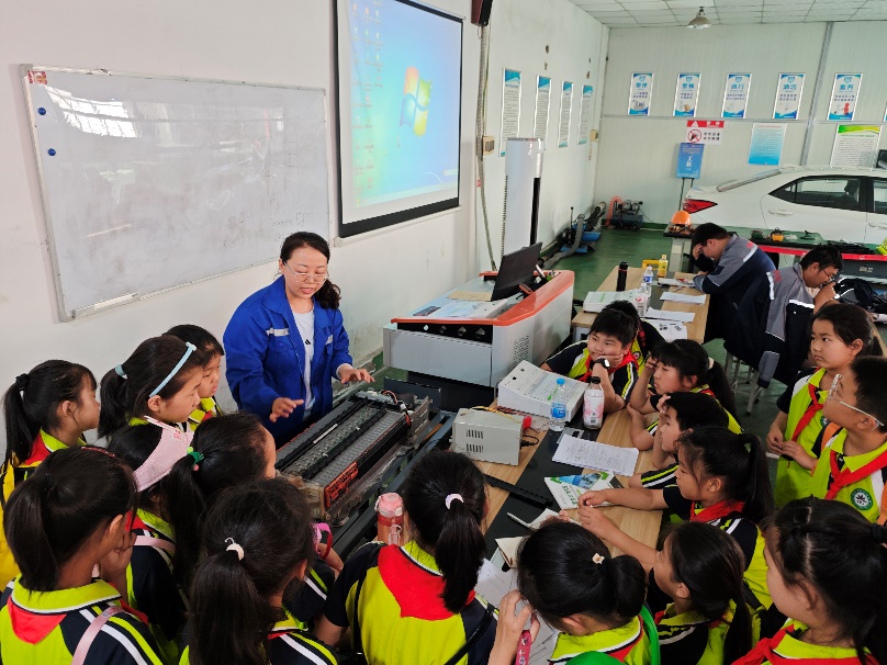 活动中,徐青老师用通俗易懂的语言为孩子们揭秘电池工作原理,解剖车模型前围满了好奇的小脑袋,笔记本上密密麻麻的记录展现了孩子们对科学知识的渴望。通过沉浸式互动,抽象的职业教育理念转化为具象的实践体验,在孩子们心中播下了职业理想的种子。