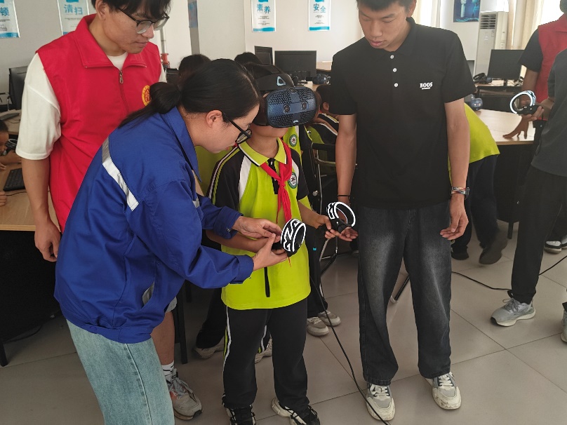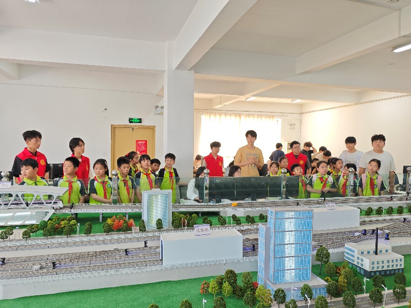 在汽车电子技能名师工作室,尚亚博老师为孩子们演示了机器人编程方法,灵活起舞的机器人引得阵阵欢呼;新能源汽车虚拟现实协同实训中心内,党金金老师指导学生佩戴VR设备探索数字孪生技术,孩子们兴奋地分享“摸到了全息汽车方向盘”的奇妙体验;城市轨道交通信号控制实训室里,曲雅婷老师通过动态沙盘系统展示高铁调度流程,学生们还在模拟操作台上完成了“洛阳地铁3号线”虚拟调度挑战,过了一把“小小工程师”的瘾。