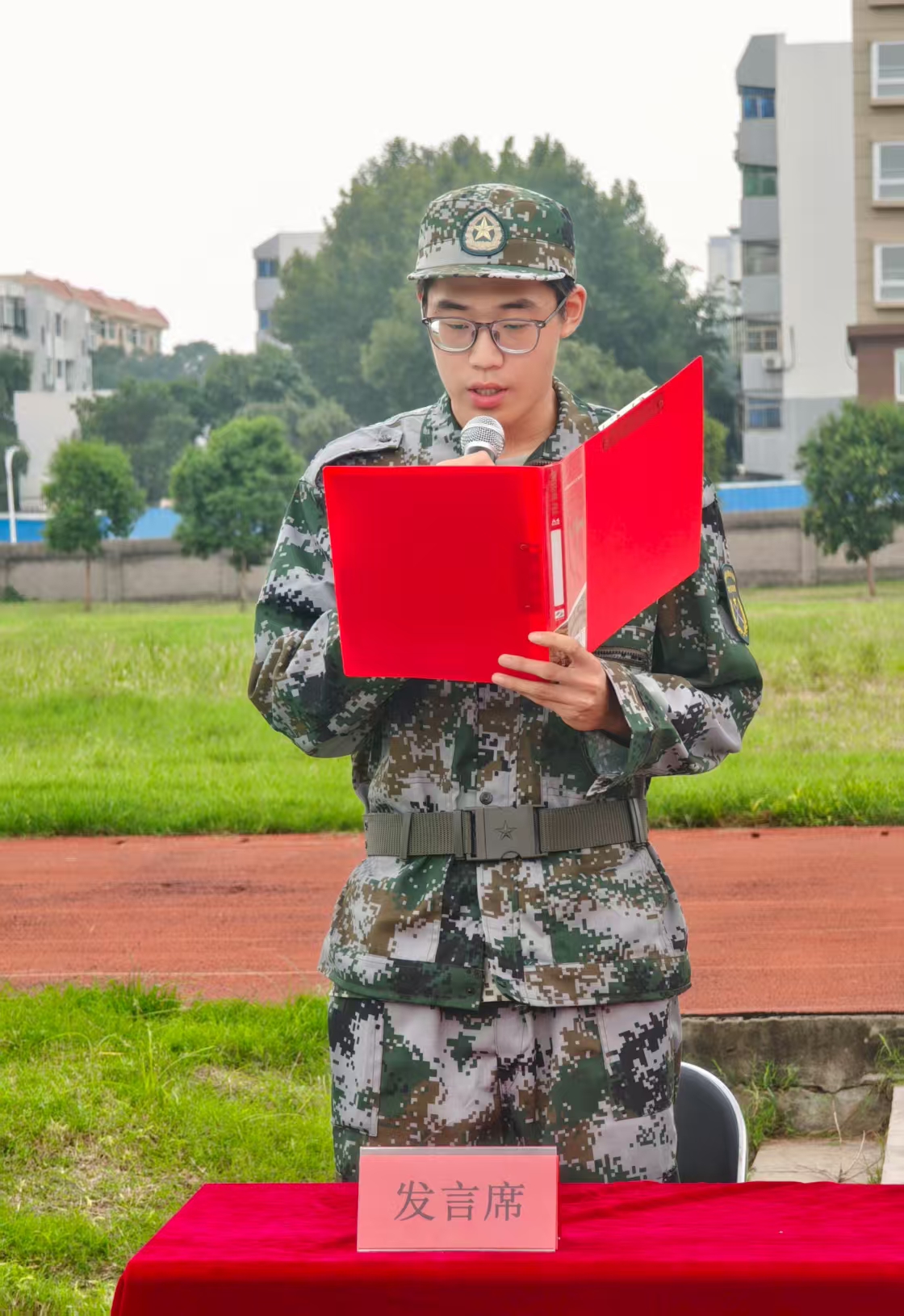 接着,总教官代表发言,他表示全体教官将严格要求、科学施训,同时也会关心爱护学生,确保军训任务顺利完成。