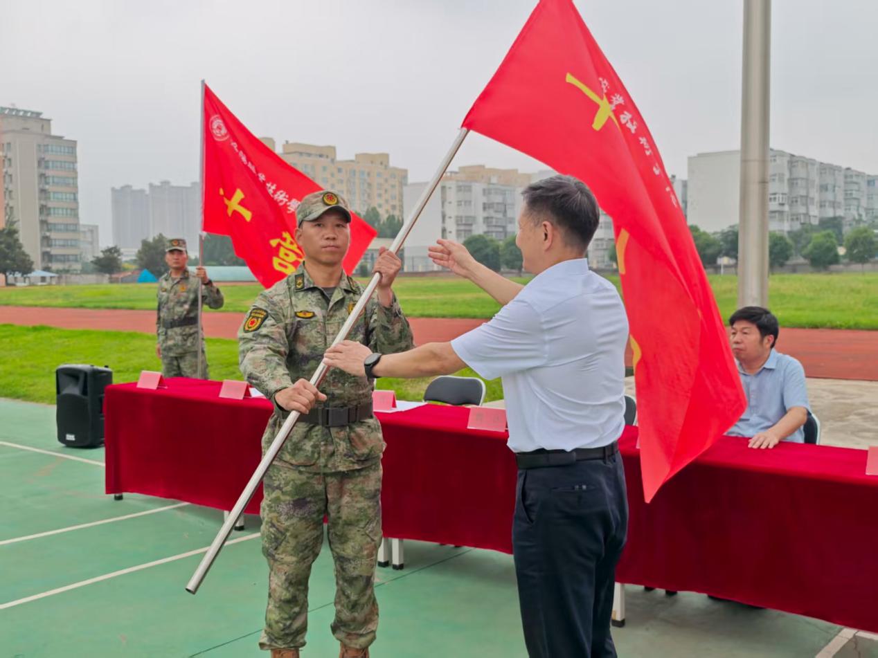最后,魏征书记郑重地将军训营旗授予教官,鲜艳的旗帜在风中飘扬,也点燃了同学们的参训热情。相信在接下来的军训中,同学们定能收获成长与蜕变。