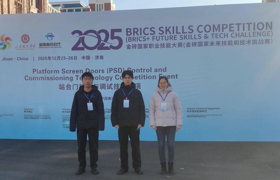 12月23日至26日,2025金砖国家职业技能大赛(金砖国家未来技能和技术挑战赛)站台门控制与调试技术赛项国际总决赛在山东职业学院举办。汽车与轨道交通学院参赛队伍收获全国三等奖。