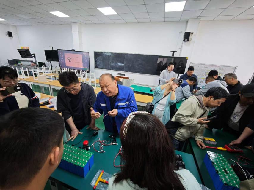 培训采用“理论+实操”一体化模式,分别在拖研所会议室和学院汽车实训中心进行。理论环节中,学院“双师型”骨干教师围绕动力电池及其管理系统等核心内容,结合拖研所新能源产品的实际应用场景,以案例解析将抽象知识转化为实用技能。实操环节依托学院先进的新能源汽车实训设备,通过现场演示与动手操作,帮助参训人员系统掌握关键技术流程与安全规范。参训工程师普遍表示,培训内容紧贴生产一线,针对性强,为后续新能源产品的试验验证提供了有力支撑。